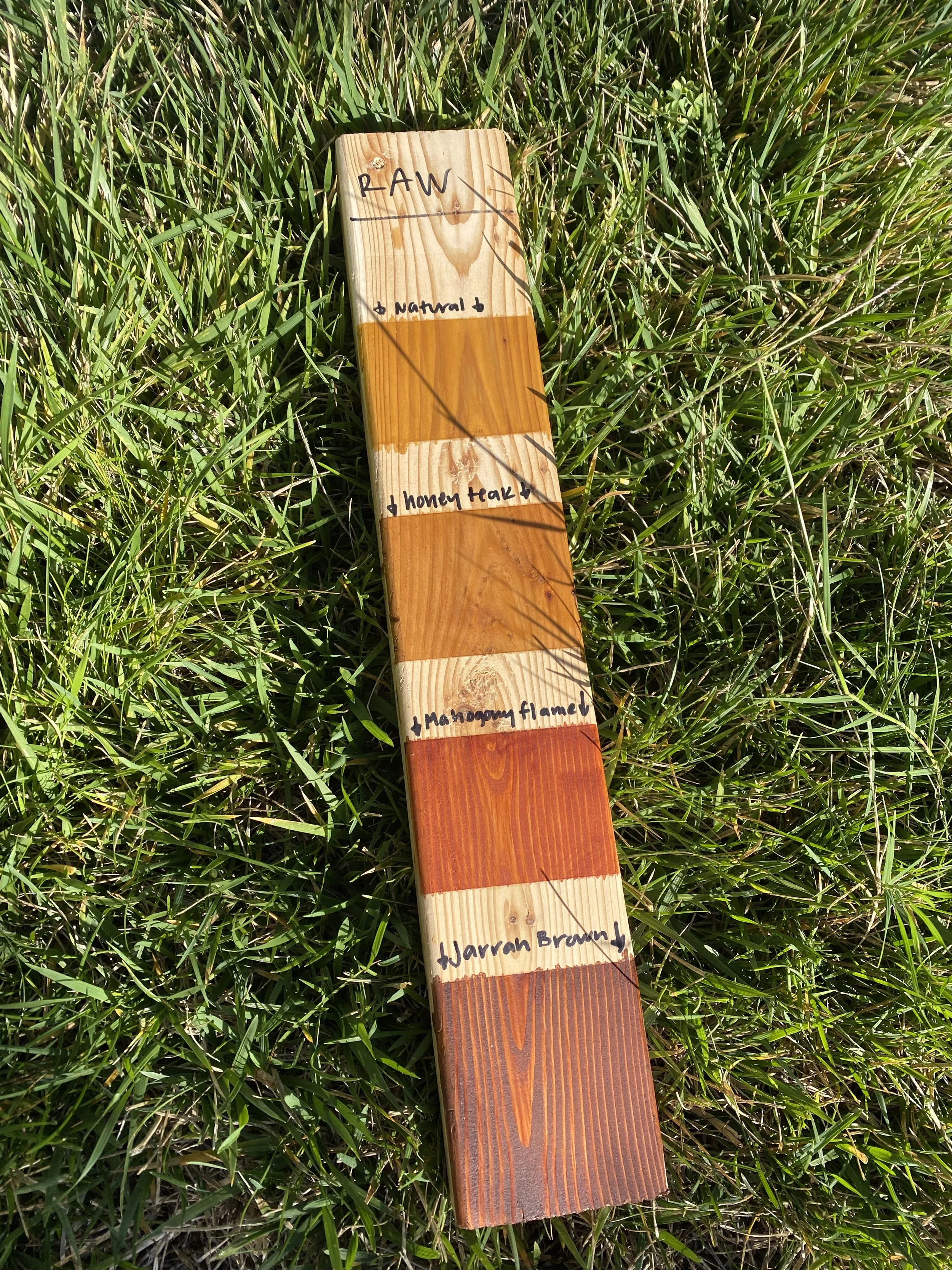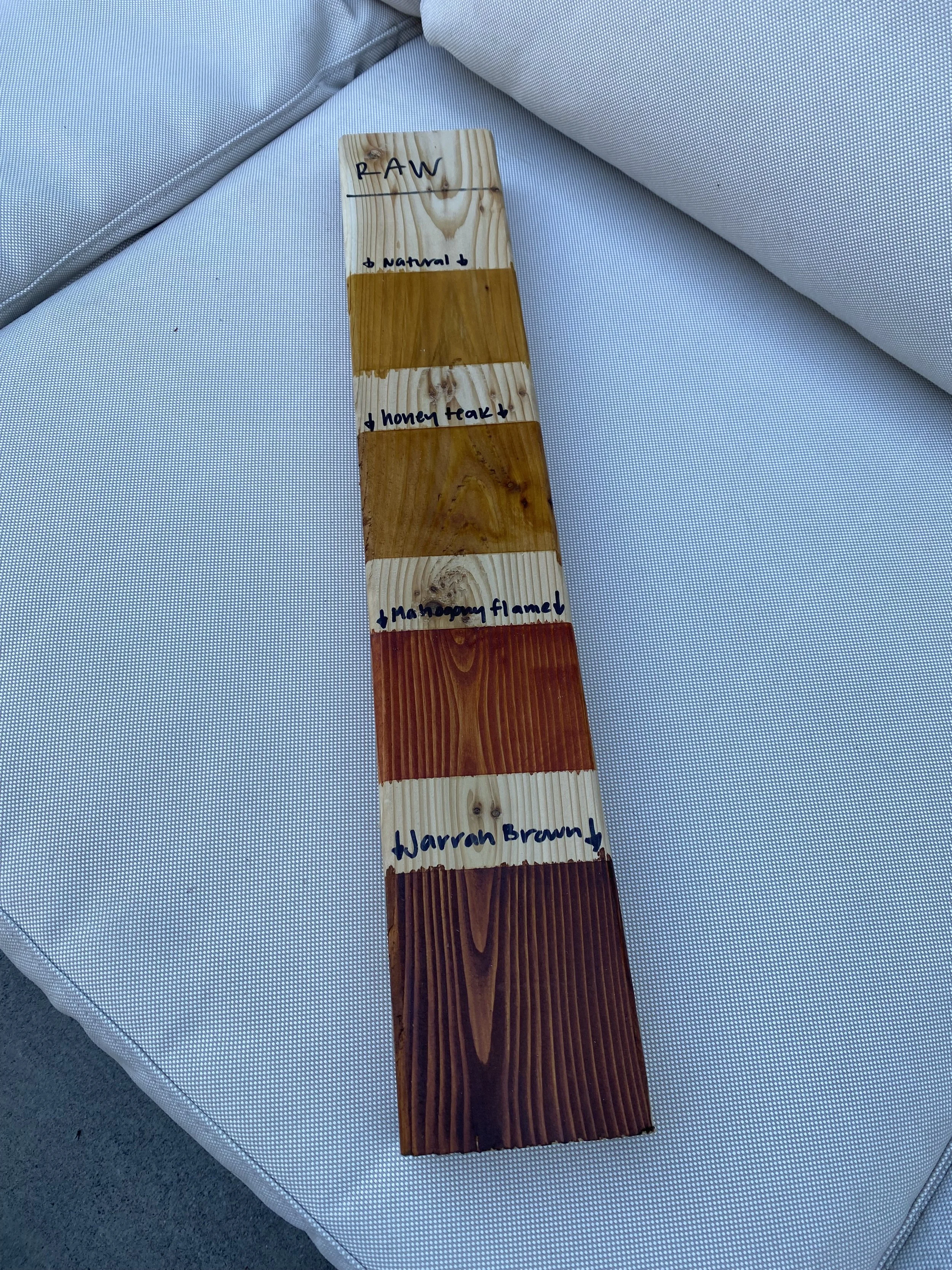 We use Cabot Australian Timber Oil, which provides beautiful color and excellent protection from UV rays and weather.